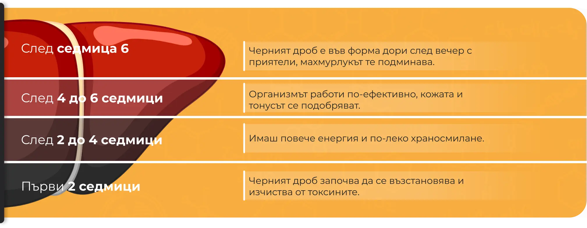 Ако често усещате тежест, гадене и липса на енергия след парти вечер, черният ви дроб има нужда от подкрепа. Нашата формула помага за по-бързо детоксикиране на организма, подпомага възстановяването след употреба на алкохол и връща усещането за свежест и тонус още на следващия ден.