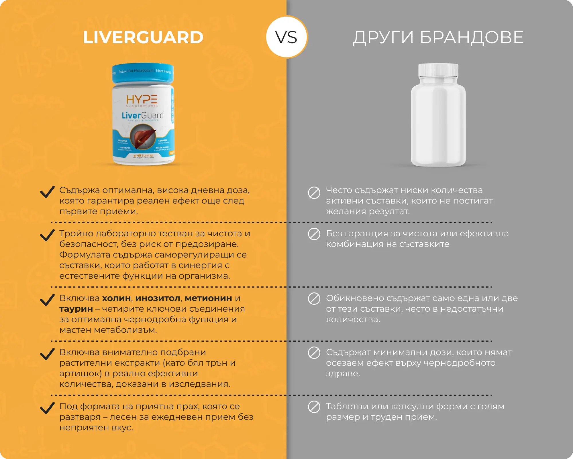 Това е хранителна добавка от ново поколение, която подпомага елиминирането на мазнините и токсините, натрупани в черния дроб. Изключителната формула на LiverGuard доставя ГОЛЕМИ количества важни микроелементи, без които черният дроб не може да изпълнява пълноценно своите функции.